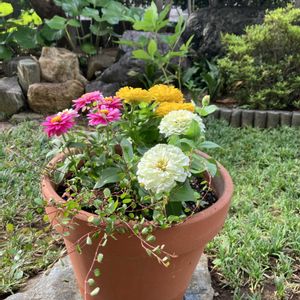 この春は花の種を蒔こうと思い、ホームセンターで選んだのは、百日草(ジニア)キャンディミックス 写真のお花が可愛かったので😄💕 徒長しながらも😅ポットから鉢植えと地植えにしたら、地植えのいくつかが虫に完食された〜😫💦 なので鉢植えで過保護にしてます🤭 1⃣2⃣3⃣4⃣種袋と同じお花が咲きました💓6種類 どの子も可愛い〜 5⃣6本地植えにしたら何者かに一本引っこ抜かれ、もう一本は折られてた(カラスか??)オルトランまいたけど虫に食べられ…😫受難のジニアですが、成長続けてます✨ お花見られるといいな〜