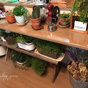 No.2 こちらは室内管理にしたグリーン達🌿 リビングが賑やかです。 2階の日当たりのよい部屋は もぅ植物園です笑 帰宅すると葉っぱの匂いがします🌿 古道具とグリーンって相性がよいね💕 グリーンを眺めながらコーヒー☕️ 嬉しいです(*´-`)♡