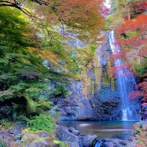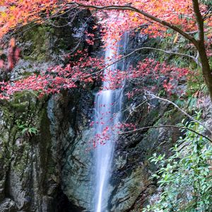 メインの箕面の滝🍁 11時に家出て普通だと 1時間くらいで着くようだけど あちこち見てのんびりと 1時半位に着いて これ撮るためにお弁当🍙 持ってチャリ🚲漕いで 2、8キロの坂道を歩き🚶♀️ 紅葉の天ぷらも早々と売り切れで ちょっと残念でした 前の時は早めに出たので滝壺に日があたり右の下の方に🌈出てました この日は見ることできずに!