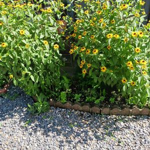 おはようございます☘️ ルドベキアタカオ💛さん まだ!まだ!元気に長いこと楽しませてくれますね💕 こんなところにも 零れた苗がスゴいね💛💛 ミニひまわり🌻を添えて玄関に🎶