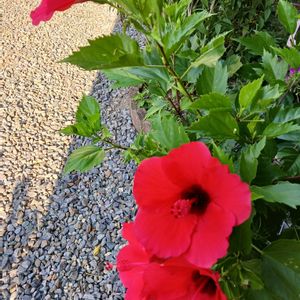 おはようございます☘️ ①今朝はハイビスカスが4輪、咲きました🎶🌺🌺🌺🌺 ③元気に咲いているルドベキア・タカオ💛 ユキヤサギの葉を 添えて🎵