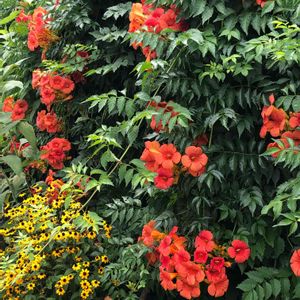 おはようございます😃 ノウゼンとルドベキアタカオ 夏の 太陽が好きなようです。
