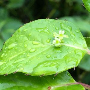 花筏、今年も葉っぱの真ん中に花を咲かせましたよ😊