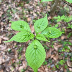 ハナイカダ 雄株雄花 モチノキ目ハナイカダ科ハナイカダ属 落葉低木 雌株とは少し離れた場所にあります こちらは一枚の葉に幾つかの花が咲きます。未だ全部咲き切っていないので咲いた頃に又見に行かれればと思っています。 別名 嫁の涙