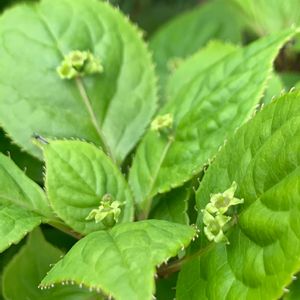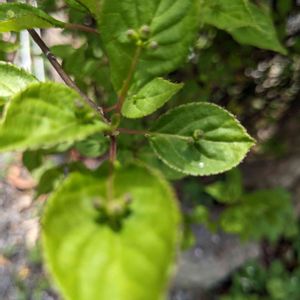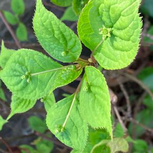 ハナイカダ 昨年庭に植えたばかりの花筏✨ 落葉後に枝まで姿を消してしまったようで残念に思っていたのだけれど、ちゃんと芽吹いてきて喜ぶ 金曜日の蕾たち🏷️ 数粒のっているから、これは雄株やったんやねf(^^; 今日は花散らしの雨… 金曜キラキラ🏷️
