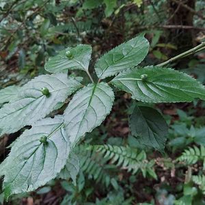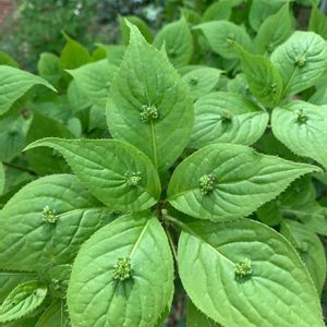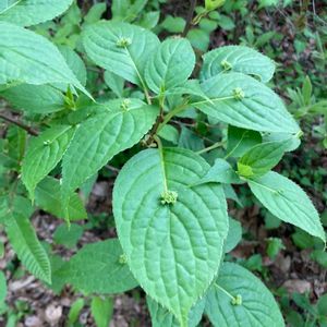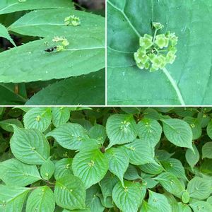 クジャクシダの上を見たら、何と‼️😳 ハナイカダさんがいらっしゃるではありませんか、😍 別名(ヨメノナミダ)と、ウェ〜ン💦 🌱モチノキ目ハナイカダ科ハナイカダ属 秋に黒い実がつくかも知れず、食べられるそうなのです。🤪 庭に植木で植えたのですが、いつか絶えてしまいました😅、野生に会えて嬉し〜😆😳😄