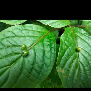 ハナイカダ科(ミズキ科)ハナイカダ属 花筏 別名:ヨメノナミダ 雌雄異株。雌花は普通一個付くが雄花は複数付きます。 なのでこれは雄花の様です。 しばらくすると蟻🐜が寄って来て蜜吸ってました。(こんな小さい花でも蜜ある?) 蟻にとっては葉っぱの上の方が歩き易く蟻に花粉を運んで貰う為にこういう形に進化したと考えられてます。(ホントかね?🙄)