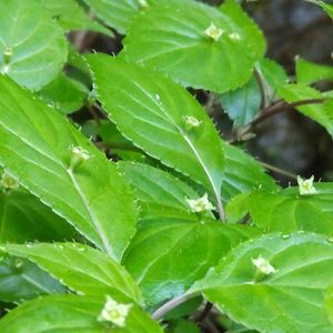 おはようございます♪ 板橋赤塚植物園の散策 見たかった初めましてのお花です🤗 葉の上に花を咲かせて実を付ける不思議なお花です 🍃花筏(ハナイカダ)🍃 ハナイカダ科(ミズキ科) ハナイカダ属 落葉低木 雌雄異株 花期4〜5月 雌花….普通1個付くが時に2〜3個付く 花は直径4〜5㎜、花弁3〜4枚、花柱は3〜4裂、雄しべは無し 雄花‥.数個ずつ付き、雄しべは3〜4個、花柱は退化してる 次は雄花を見たいです
