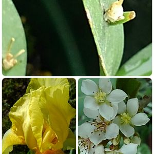 葉っぱの上に本当にイカダを乗せてるみたいです😃✌ジャーマンアイリス黄色が咲き始めました🌻 そしてシャリンバイも少しですが咲いてます🍀💕