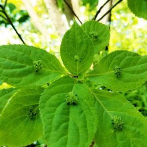 キュンキュン乙女倶楽部 グリーン投稿💚 実家の庭で見つけた『新緑』 ハナイカダって、この状態で 開花してるのかな🤔?