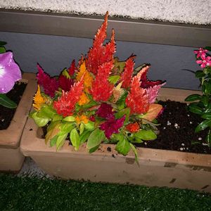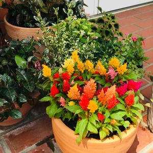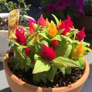 夏向き寄せ植え 三たび😊 ケイトウ多粒蒔きポット苗を 加えてみました。🤗 前回より少し派手な感じて これもまた夏らしいようで!😍