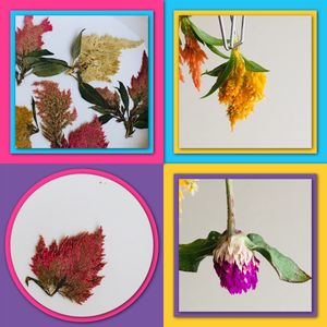 梅雨空が続きますね🌀☂️ 摘みがらが勿体なくて、ケイトウを押し花にしてみなら、意外と良い色が出ました🌸🌼🌿(左) 調子に乗ってドライフラワーにしてみようと、洗濯ばさみで吊るしてみた🌺😊 その後は、ノープランです😓 天気が悪い日や、暑くて外出したくない日に、何かに出来るかなぁ❓