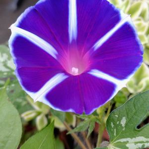 種からの 枝垂れ朝顔 恋しぐれ やっと やっと 咲きました😍🥰 枝垂れ朝顔です 垂れ下がった蔓に咲き始めましたら また UPしますね❣️