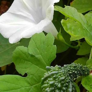 おはようございます。 朝顔とゴーヤが仲良く 並んでいました。