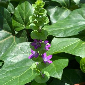 花壇を覆うアイビーの隙間から、スックと立ち上がった凛々しい姿のキキョウソウ🌸 花は大きく葉っぱもツヤツヤ、今まで見た中で一番立派なキキョウソウでした😆🌿