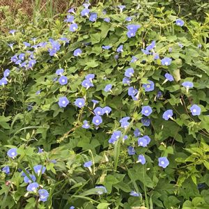 小朝顔は白青有るようだけど我が家は白ミツバツツジを覆い尽くす 隙あればサツマイモだって立ち上がって木登りする狗尾草も2メートルになって賑やか後一週間で試験芋掘り〜