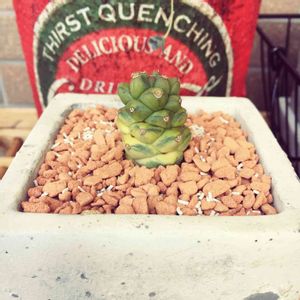 74.ちーむハテナ 【リチェイ錦】 全く動いてないと思ったリチェイが 芽吹いていた! 成長点なんて無視して そんなとこから。 こんにちは。 頭頂部はつるっぱげです。 成長は激おそいけど 斑が美しくってお気に入りでふ♡ 晴れたぞ! 全員に水やる!