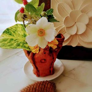 🍀縄文土器🍀 娘が小学生の時に作った土器に庭の花をいけてみました✨水が漏れます😨 防水処理が必要です😅