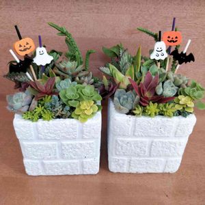ハロウィン寄せ植え第2弾。今日も百均の鉢に百均のピック(◍•ᴗ•◍)