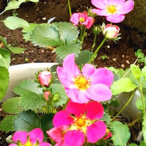 🍓いちご 小さな花も 大きな花も 次々に咲き始めた 庭のいちご 一つ2つ3つ4つ 毎日蕾が増えて 賑やかになっていく いい子だね 頑張ってるね おひさまを食べて お水を飲んで 葉っぱを育てるのも 忘れないでね 一緒にいくつもの 冬を超えてきた あなたの前で涙を落とす 私をそっと見ていてくれた 北風が吹くまで 花を咲かせて元気をくれる 私の庭のトスカーナ 進んで行こう 楽しいいちご時間 🍓4年目のピンクの花のいちご トスカーナ🍓 株分けした鉢も元気です。 去年より桃色が鮮やかで、たくさん花をつけてくれました。 今年は、白い花のいちごも仲間入りしました🎶たくさんなるといいな😋