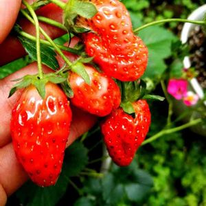 🍓次々に花が咲いてるけど なかなか実が大きくならない🍓 おはようございます ☔今日は雨なので イチゴの育て方を勉強中 🌸受粉 花が咲く2日前から 雌しべは受粉能力があるけど 雄しべは2日後から 受粉能力があること まずは雌しべが待ってる💕 ←指で受粉してあげると良いそうです🎵 🌸摘花 摘花では実が大きくならない 今咲いてる花は なんと❗2か月前に作られた花 そんなわけで 摘花は2ヶ月後の花のためにする 🌸花芽 イチゴの花芽は 株の中心から出てくる そのあとに出てくる葉っぱが 中心を交代するから 脇芽から出るように見えるだけ 主役はあなた🎵 🌸イチゴの果実の大きさ 果実の大きさは 花の段階で決まっている 花びらが大きいと大きな実がなる 花びらが多いものは 花芽時期に栄養が良かったもの 🌸古い葉っぱ イチゴに栄養をあげてる 70~80%は新しい3~4枚の葉っぱ 古い葉っぱで枯れてるものは 害虫の巣になるので取り除く イチゴも綺麗に整える✨ 🌸害虫 イチゴの花の雌しべにつく 小さくて黒い虫は取り除く これがいると イチゴがふっくら大きくならず ゴツゴツ硬いイチゴになっちゃう 晴れたら黒虫油虫チェック‼️ 🌸イチゴの土のブレンド ピートモス 8 パーライト 1 バーミキュライト 1 水捌けが悪いと根腐れする 土の表面が乾いたら水やり イチゴって🎵面白いなぁ 今咲く花は2か月前の2月 寒さの中で準備した花なんだ💞 ピンクの花 見てるだけでも楽しいけど 実が大きくなるのも楽しみ 雨がやんだら株を分けて 新しい鉢に植え替えしよう 四季なりイチゴだから 夏にも元気に花に会えるように 私のイチゴトスカーナ 今日の雨でイキイキ 元気に大きくなあれ😊 🌸東京 雨 13℃