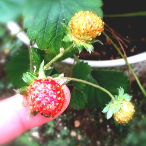 今日の収穫❣️ 形は悪いけど、甘くて酸っぱくて とっても美味し🍓😋💕 降り続いた雨で 半分が赤くなる寸前で 🌟になり ダンゴムシにもかじられながら 無事に生き延びた こちらの皆様は勝利の皆様 有難う✨😍✨🍓さま