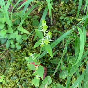 ハナイカリ(花碇.花錨) *リンドウ科ハナイカリ属 花期は8〜10月 北海道〜九州の山頂帯から亜高山の日当たりの良い草地に生える越年草! 高さは10〜80cm 葉は柔らかくほぼ無柄で対生し狭楕円形〜長卵形! 花は茎頂と葉腋から初めは横向き 後に上を向いて咲く。 花色は淡黄色〜黄緑色で終盤には距も深めて赤みを帯びてくるようです! 花先は4中裂し裂片の下部が線状に伸びて船の碇に似た距となり蜜をためるようです! とても小さな株を初めて、1つだけ見つけました。 既に終盤で果実が見えています❣️ こんなに小さくとも、今年は花を咲かせたのが愛おしく感じました❣️ 9月29日撮影 宮城県白石市