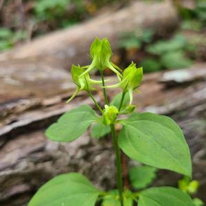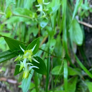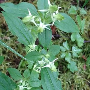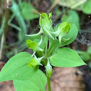 ハナイカリ (花碇) 🌿リンドウ科 ハナイカリ属 ✽4稜があり、直立する茎は10〜40cmの一〜越年草 ✽ほぼ無柄の対生する葉は楕円形で先がとがり全縁で3脈が目立つ ✽花は茎頂と葉腋から出た柄につき、がくは全裂し、花冠は先が4深裂して裂片の下部が長く伸びて距となり船の碇のように四方に開出する 地味目の花ですが、見つけることができました💚🍀
