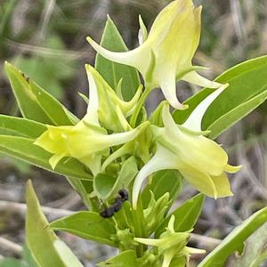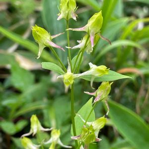 ハナイカリ(花碇) リンドウ科 やや緑色を帯びた淡黄色の船の錨のような形の花⚓️ 花の形が特徴的で、錨の先がだんだんピンクになるのも魅力的💕