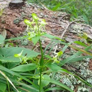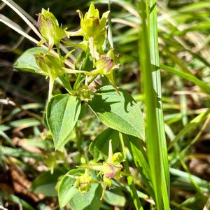 ハナイカリ🌱 やはり同じ林道脇の明るい草むらにて、20センチほどの、ほかの植物の中ひっそりとさいてる。オダマキにも似た花