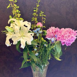 アレンジメント💐 シャクヤク🩷ボタン❓ と百合🤍 美人姉妹👭 母の付き添いで