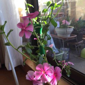 可愛い日々草もいました。 寒いので部屋に入れてます。 🏷19日はピンクの日に参加させて頂きます。(2枚目です) 窓の外には桜草も見えます。