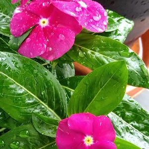 𓂃 𓈒𓏸𑁍 夏のお花だけれど 雨上がり〜 可愛く綺麗に咲いています🌸 ✿...*゚ セレブシンフォニー ビンカ 日々草 ナツザクラ (夏桜) ✿...*゚ 今日もよか一日に♥(*´꒳`*)ヨキヨキ🌸🍀