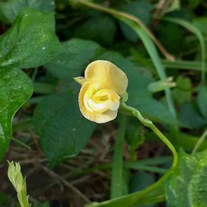 藪蔓小豆 ヤブツルアズキ マメ科ササゲ属 小豆の原種 2個が合着して筒状になった竜骨弁はくるりとねじれ左側の翼弁がかぶさっている 右側の翼弁は竜骨弁をだくようにつきでる 野小豆とよく似ています 小首をかしげてる姿 愛嬌があって可愛いお花です💗