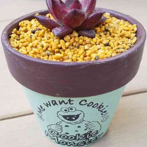 こちらも植え替え記録📝 先日当選して届いたロメオルビンさん ずっと前に作ったけど奥にしまいこんで忘れていたクッキーモンスター鉢を思い出したのでIN!!! ズボラ管理の私がこの子を育てられるのか不安しかないですがせっかくのご縁なのでどうにかうちの環境に慣れてくれる事を願うのみ!!! ズボラは変えられそうもないので多肉に頑張ってもらいます(笑)