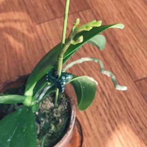6月にお迎えしたマイクロ胡蝶蘭 やっと花芽出て来た🙌 左の…花芽? どーしたいのでしょうか… ちゃんと 出て来てくれるのかなぁ🙄
