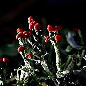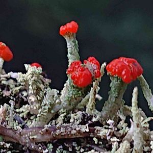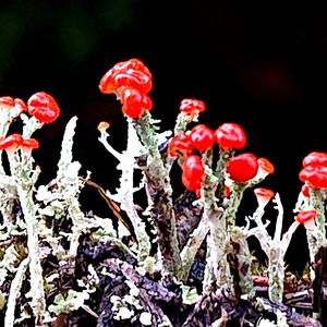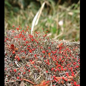 地衣類の一種だと思うけど 赤い球が ・・・知らんけど!?