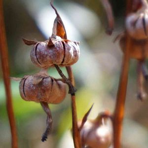 イチヤクソウ (一薬草) 花後 *ツツジ科イチヤクソウ属 花期は6〜7月 北海道〜九州の低山の山中に生育する。 すっかり乾いてしまいましたが その姿を残したままでした。 ↘️象の鼻のように湾曲した雌しべもしっかり残っています! 宮城県亘理郡深山