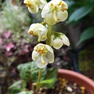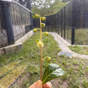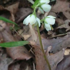 里山の林下で イチヤクソウ 小さいのでiPhone逆さにしてやっと撮れました