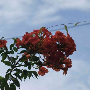 ノウゼンカズラが咲いていました、少し色の濃い赤い花