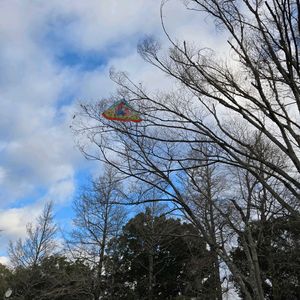 静かなお正月 2日から娘家族が来ました👦👧 きのう公園で凧上げをしていて、一番良く上がって回りの人から「すごーい」と言われたとたん木にひっかかり… 今朝ラジオ体操に行ったらまだくっついたまま😅 雨か風で落ちてくれますように。 すぐ回収に行きまーす🪁