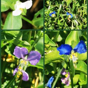 1.ツユクサ3種類 2.ヒレタゴボウ 3.アキノノゲシ 4.キバナシュクシャ(ジンジャーリリー) 5.タヌキマメ 秋の草花、違っていたら、教えてください。
