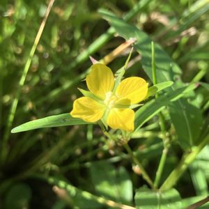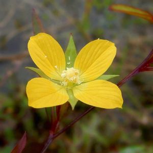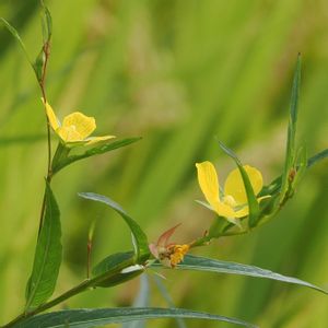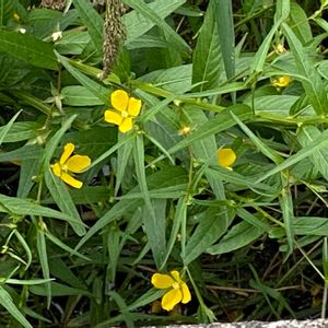 ヒレタゴボウ アカバナ科チョウジタデ属 一年草 別名はアメリカミズキンバイ 熱帯アメリカ原産 日本では1955年に愛媛県で発見され、その後高知県、岡山県、千葉県などの水田や沼の畔などで広がっていった。 花期8〜10月 草丈は50〜100cm 茎は直立か斜上して、よく分枝し、断面が四角形で、葉の付く下部に翼があり、その翼(ヒレ)が和名の由来である。 葉はほぼ無柄で、やや光沢があり、質は薄い。 花は鮮やかな黄色の4弁花で直径約2.5cmで散りやすい。 花弁の長さは8〜12mm。 雄しべは8本で長さ約1mm、葯は白色。 雌しべは1本で長さ約3mm。 柱頭は棒状になる。 萼は4個で、先が鋭く尖り、果実期まで残る。 🏷️月曜日にビタミンカラー に参加させていただきます。