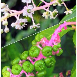 1️⃣2️⃣ ヨウシュヤマゴボウです。 田舎では良く見かけますが 今年は我が家の庭に2本生えてきたので 鉢に写し替えて 育てました。 ある日 花屋さんに行ったら これ 売られており 増々 育てる意欲満々になりました😃😱💪 今 黒い実が沢山 鉢で育てると 見応えありました😍😂 3️⃣ これも 突然鉢に生えてきた ヒレタゴボウ 別名 アメリカミズキンバイです💛 とっても可愛いお花が咲きました。雑草ですが 抜かずに 眺めております🧐😍🤗 4️⃣ 我が家のムラサキシキブ だいぶ 色付いてきました。 紫色に癒やされます💜^‿^