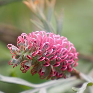 グレビレア ドーンパープル。 剪定しそびれて伸び放題ですが 今年も花が増えてきました。 たくさんのピンクのハリネズミが 庭で戯れています。