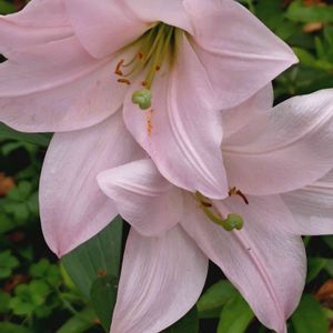 百合 マグニフィーク 鉄砲ユリの改良品種 ヒメサユリに似ているね 優しいピンク、柔らかさ、ほんのりピンクが素敵な百合の花