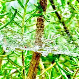 ローズマリーは蜘蛛さんもお気に入り 水平に糸を張って 蝶々を待ち構えています