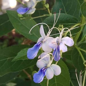 クレロデンドルム、ブルーエルフィレの花が、チヂミ蝶みたいでカワイイので、一輪挿しにしました。左に拡大しました! 次々に咲きます。お気に入り♥