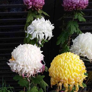 今日は大輪菊を紹介します♪ 大輪は蕾を一輪にする事で花の大きさが約10cmぐらいになります。 花の色は他に白色、黄色、紅色もあります♪