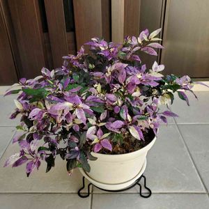 昨日の雨のお陰で気温も低く過ごしやすい朝を迎えました。 ❁❁ 昨日のお花 ❁❁ 観賞用とうがらし ❁¨̮ パープルフラッシュ なぜ今日か?? まだ実が付いていないので昨日はスルー。 雨上がりの朝 見ると綺麗だったので登場してもらうことにしました🤭 去年も育てました。裏に置いている鉢にこぼれ種から咲いた子がいるのですが、徒長し過ぎて違う品種の子のようになってます😆 葉もあまり紫じゃないし😂 台風13号は関東方面へ🌀 線状降水帯が多くの地域に発生☔️ 大きな被害が発生せず無事去り行く事を祈ってます🙏